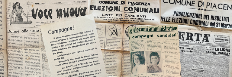 Il 31 marzo marzo 1946 si svolgono a Piacenza le prime elezioni amministrative per scegliere i quaranta consiglieri del primo Consiglio comunale su base elettiva del dopoguerra. È la prima volta che le donne della nostra città vanno a votare. Le 24.891 elettrici iscritte nelle liste elettorali del Comune di Piacenza sono finalmente legittimate ad esprimere non solo la loro preferenza ma anche ad accedere alle cariche elettive.